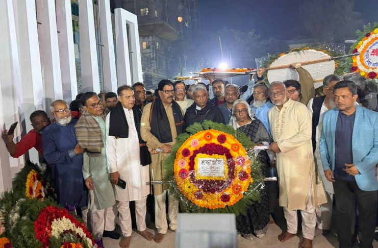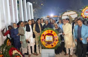 এমএম কলেজ শহীদ মিনারে প্রতিমন্ত্রী অনিন্দ্য ইসলাম অমিতের শ্রদ্ধা; একুশের প্রথম প্রহরে জনতার ঢল