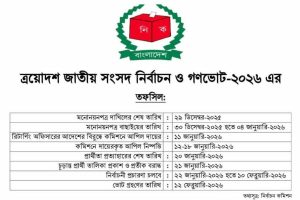 লোকসমাজ ডেস্ক ॥ আগামী ১২ ফেব্রুয়ারি ত্রয়োদশ জাতীয় সংসদ নির্বাচনের দিন