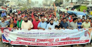 নবনির্বাচিত প্রধানমন্ত্রী তারেক রহমানকে অভিনন্দন জানিয়ে বেনাপোলে শ্রমিকদের আনন্দ মিছিল