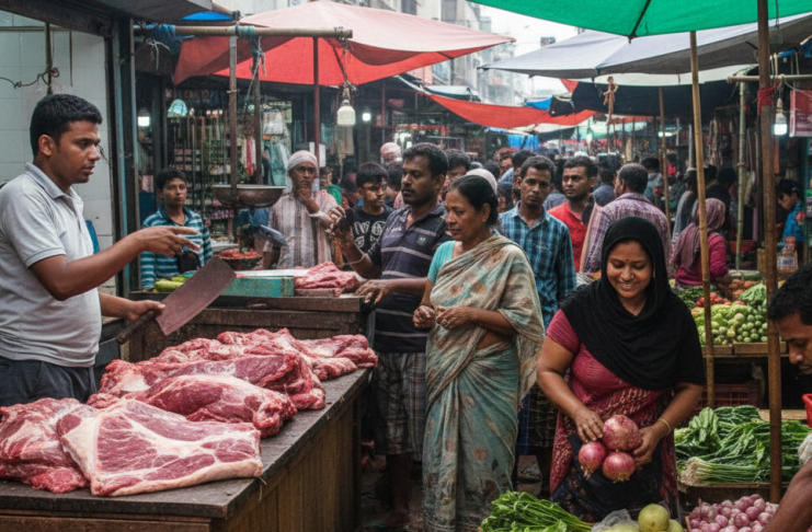 চড়া দামে বিক্রি গরুর মাংস, কমেছে সবজি পেঁয়াজ ও মুরগির দাম
