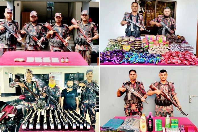৪৯ ব্যাটালিয়ন বিজিবি’র পাঠানো এক প্রেস বিজ্ঞপ্তিতে বলা হয়েছে, শনিবার বিজিবি’র একাধিক টিম বেনাপোল সীমান্ত এলাকা, আমড়াখালী চেকপোস্টে ও যশোর-বেনাপোল সড়কের নিমতলীতে মাদক ও চোরাচালানী বিরোধী আলাদা অভিযান চালায়।