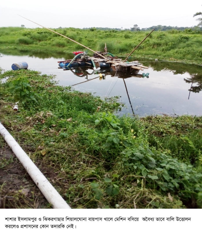 শার্শার ইসলামপুর ও ঝিকরগাছার শিয়ালঘোনা বায়পাস খালে মেশিন বসিয়ে অবৈধভাবে বালি উত্তোলন করলেও প্রশাসনের কোন তদারকি নেই-লোকসমাজ