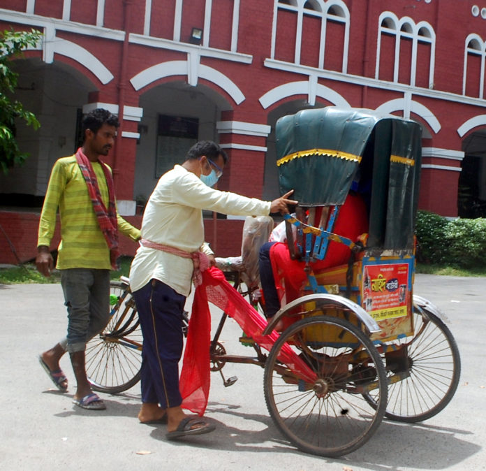 অসতর্কতা: দুই নারী রিকশা আরোহী গল্প করতে করতে গন্তব্যে যাচ্ছিলেন। সহসা তাদের একজনের ওড়না জড়িয়ে যায় রিকশার চাকায়। ঘটনাটি বুঝতে পেরে দাঁড়িয়ে পড়েন রিকশাচালক। শনিবার যশোর কালেক্টরেট ভবনের সামনের রাস্তা থেকে ছবিটি তোলা– এমআর খান মিলন