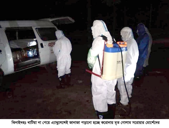 স্টাফ রিপোর্টার, ঝিনাইদহ ॥ ‘করোনায় মৃত্যু’ বলে দাফনকারী টিমকে কোন খাটিয়া দেওয়া হয়নি। আসেননি কোন স্বজনরা। অগত্যা গভীর রাতে ঝিনাইদহ ইসলামী ফাউন্ডেশনের লাশ দাফনকারী কমিটি এ্যাম্বুলেন্সে রেখেইে মৃত ব্যক্তির নামাজে জানাজা সম্পন্ন করেন। হৃদয় বিদারক এ ঘটনাটি ঘটেছে ঝিনাইদহ জেলার শৈলকুপা পৌরসভার মধ্যপাড়ায়। এই পাড়ায় মৃত রফিউদ্দীন মোল্লার ছেলে গোলাম সরওয়ার মোর্শেদ (৫২) চট্টগ্রাম রেলওয়েতে প্রকৌশলী পদে কর্মরত ছিলেন। সেখানে করোনা উপসর্গ দেখা দিলে তিনি গত ২৯ জুন শৈলকুপার বাড়িতে আসেন এবং পরীক্ষায় তার করোনা পজিটিভ আসে। গত বুধবার গোলাম সরওয়ার মোর্শেদ কুষ্টিয়া সরকারি মেডিকেল কলেজ হাসপাতালে ভর্তি হন। সেখানে শারীরিক অবস্থার অবনতি হলে তাকে বৃহস্পতিবার রাজশাহী মেডিকেল কলেজ হাসপাতালে পাঠানো হয়। শনিবার দুপুরে চিকিৎসাধীন অবস্থায় মারা যান তিনি। রাতে তার লাশ বাড়ি আসার পর কোন আত্মীয় স্বজন আসেননি। গ্রামবাসীরাও তার নামাজে জানাজা পড়ানোর জন্য একটি খাটিয়াও দেননি। অগত্যা ইসলামী ফাউন্ডেশনের লাশ দাফনকারী কমিটি মোর্শেদের লাশ এ্যাম্বুলেন্সে রেখেই জানাজার পর দাফন সম্পন্ন করে। ঝিনাইদহ ইসলামিক ফাউন্ডেশনের উপ-পরিচালক মো. আব্দুল হামিদ খান ঘটনার সত্যতা স্বীকার করে বলেন, ‘দিন যতই যাচ্ছে, আমরা নতুন নতুন অভিজ্ঞতার সম্মুখিন হচ্ছি।’ তিনি বলেন, ‘গ্রামবাসীর অসহযোগিতার কারণে আমরা শৈলকুপা উপজেলার উপজেলা নির্বাহী অফিসার মোহাম্মদ সাইফুল ইসলামের সার্বিক তত্বাবধানে লাশটি দাফন করতে সক্ষম হই।’ উল্লেখ্য, ঝিনাইদহ ইসলামী ফাউন্ডেশনের লাশ দাফন কমিটির মাধ্যমে এ পর্যন্ত ১৬ জন করোনা আক্রান্ত ও করোনা উপসর্গে মৃত ব্যক্তিকে সমাহিত করা হয়েছে।