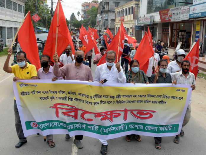 যশোরে বাম সংগঠনের মিছিল-মানববন্ধন : শ্রমিকদের জীবন অচল করে অর্থনীতি সচল করা সম্ভব না