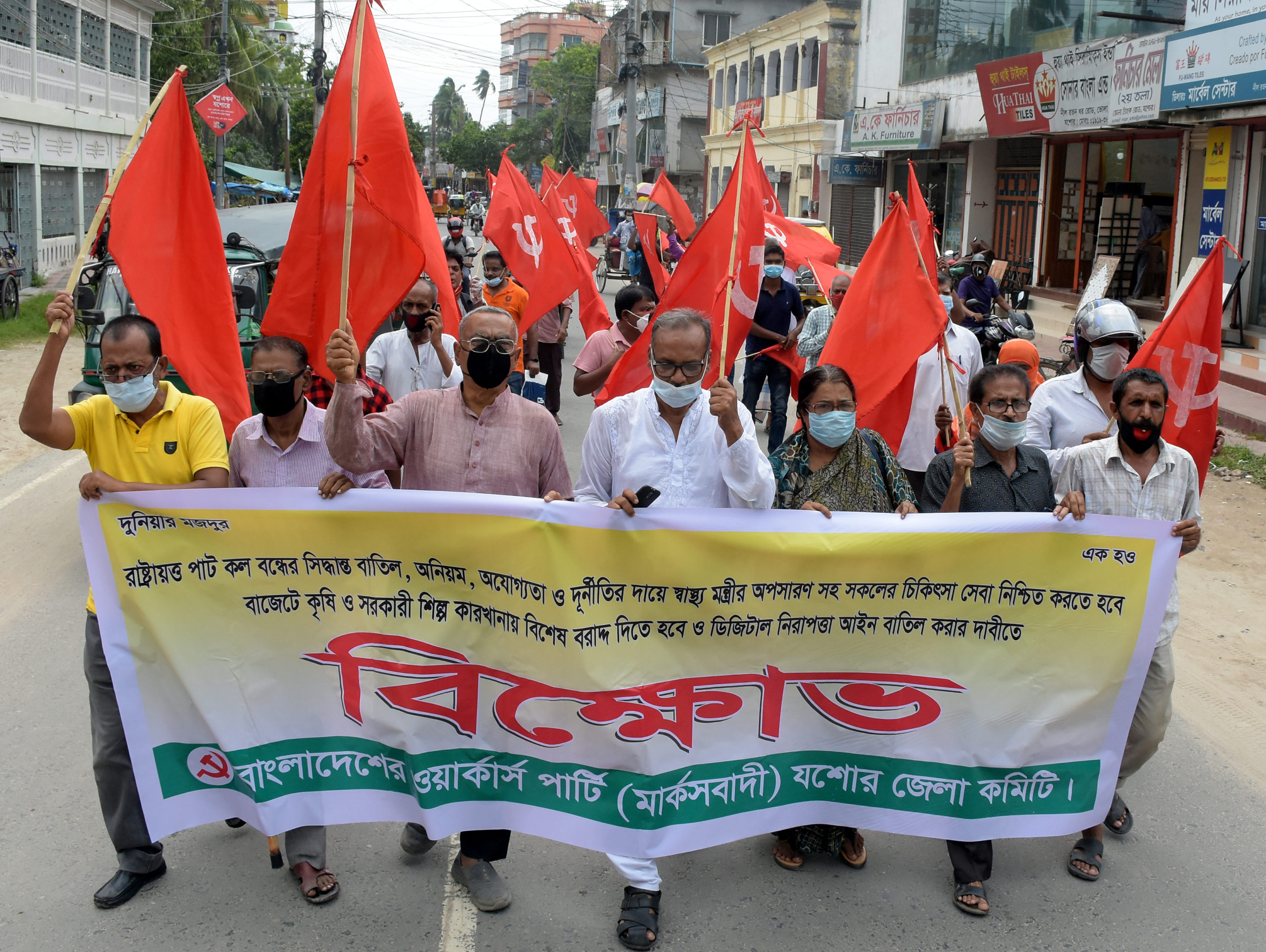 মানববন্ধন চলাকালে বক্তৃতা করেন দলের জেলা সাধারণ সম্পাদক হাফিজুর রহমান, যুগ্ম সম্পাদক কৃষ্ণা সরকার, কামরুল হক লিকু, সমীরণ বিশ্বাস, তাইজেল হোসেন প্রমুখ। এদিকে একই দাবিতে বেলা ১২ টার দিকে শহরের ভোলা ট্যাংক রোড থেকে বিােভ মিছিল বের করে বাংলাদেশের ওয়ার্কার্স পার্টি (মার্কসবাদী) যশোর জেলা কমিটি। মিছিলটি শহরের গুরুত্বপূর্ণ সড়ক ঘুরে পার্টি অফিসে গিয়ে শেষ হয়। মিছিলে নেতৃত্ব দেন দলের কেন্দ্রীয় সাধারণ সম্পাদক ইকবাল কবির জাহিদ, জেলা কমিটির সভাপতি নাজিম উদ্দিন, সাধারণ সম্পাদক জিল্লুর রহমান ভিটু, কৃষকনেতা মিজানুর রহমান, সখিনা খাতুন দিপ্তী প্রমুখ। মিছিল শেষে দলীয় কার্যালয়ের সামনে গিয়ে সংক্ষিপ্ত এক সমাবেশে বক্তারা বলেন, দেশের এ চরম সংকটময় মুহূর্তে পাট এবং পাট শিল্পকে যখন এগিয়ে নেওয়া জরুরি তখন সরকার পাটকল বন্ধ করার আত্মঘাতী সিদ্ধান্ত নিয়েছে। করোনায় বিপর্যস্ত কোটি কোটি মানুষ যখন কর্মহীন হয়ে পড়ছে তখন ২৫ হাজার শ্রমিক ছাটাইয়ের এ ঘটনা কখনও মেনে নেয়া যায় না। এ অবস্থায় সরকারকে তার সিদ্ধান্ত পরিবর্তনের জোর দাবি জানান বাম দলটির নেতৃবৃন্দ।