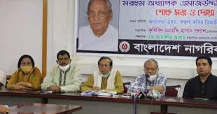 ড. এমাজউদ্দীন আহমদের মৃত্যুতে সরকার শোকবাণী না দেয়ায় ছোট হয়েছে মন্তব্য করে রুহুল কবির রিজভী বলেন, প্রফেসর এমাজউদ্দীনের ছাত্র শুধু বিএনপিতে নয়, আওয়ামী লীগ এবং অন্যান্য দলেও রয়েছে। শোকবাণী না দিয়ে তারা কি বড় হয়েছেন? না তারা বড় হননি। তিনি তো রাজনৈতিক মতবাদের উর্ধ্বে সবার ওপরে ছিলেন। এই অভিভাবকের ছোঁয়া যারা পেয়েছেন তারাই শুধু বলতে পারবেন তিনি কেমন মানুষ ছিলেন। আমরা আজকে এমন সংকীর্ণতায় ভুগছি যে এরকম একজন মহীরূহ মানুষের মৃত্যুতে শোকবাণী পর্যন্ত দিতে পারছি না। আয়োজক সংগঠনের চেয়ারম্যান কৃষিবিদ মেহেদী হাসান পলাশের সভাপতিত্বে এবং মহাসচিব এম জাহাঙ্গীর আলমের সঞ্চালনায় স্মরণসভায় আরও বক্তব্য রাখেন বিএনপির চেয়ারপারসনের উপদেষ্টা ড. সুকোমল বড়ুয়া, পটুয়াখালী বিজ্ঞান ও প্রযুক্তি বিশ্ববিদ্যালয়ের সাবেক উপাচার্য ড. আবদুল লতিফ মাসুম, বিএনপির শিক্ষা বিষয়ক সম্পাদক ড. এবিএম ওবায়দুল ইসলাম, নির্বাহী কমিটির সদস্য আবু নাসের মোহাম্মদ রহমতুল্লাহ, বিলকিস ইসলাম প্রমুখ।