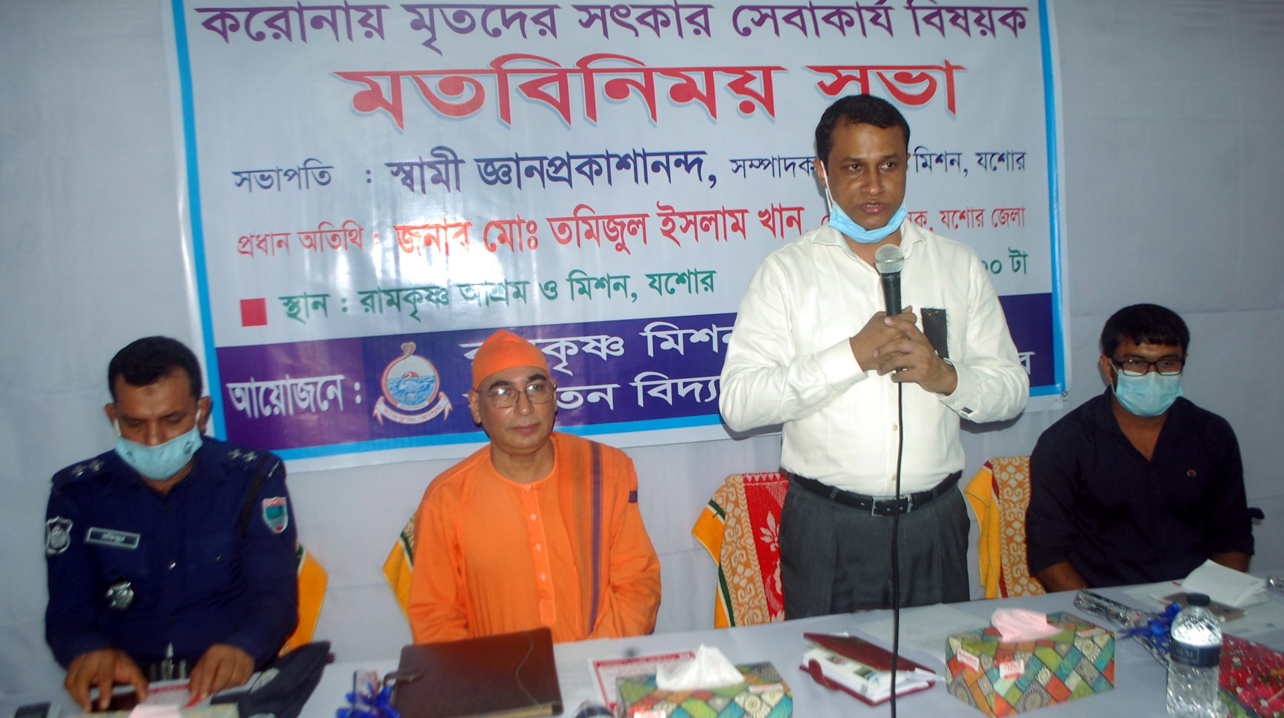যশোরে রামকুষ্ণ আশ্রমে স্বামী জ্ঞানপ্রকাশানন্দ মহারাজের সভাপতিত্বে করোনায় মৃতদেহ সৎকার সেবাকার্য বিষয়ক মতবিনিময় সভায় প্রধান অতিথি ছিলেন জেলা প্রশাসক তমিজুল ইসলাম খান-লোকসমাজ