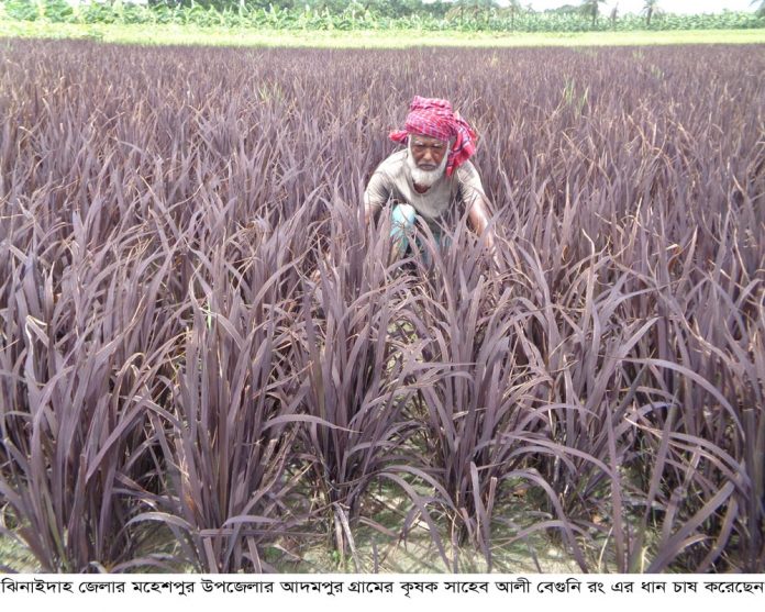 মহেশপুরের পল্লীতে বেগুনি রঙের ধান চাষ, উৎসুক মানুষের ভিড়