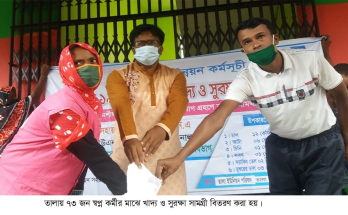 সাতক্ষীরার তালায় করোনা ভাইরাস মোকাবেলায় বৃহস্পতিবার স্বপ্ন কর্মীদের মাঝে খাদ্য ও সুরক্ষা সামগ্রী বিতরণ করা হয়-লোকসমাজ