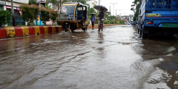 শুক্রবারের সারাদিনের ভারি বর্ষণে যশোর শহরের বেশ কয়েকটি সড়ক তলিয়ে যায়। ছবিটি রেল রোড থেকে তোলা-লোকসমাজ