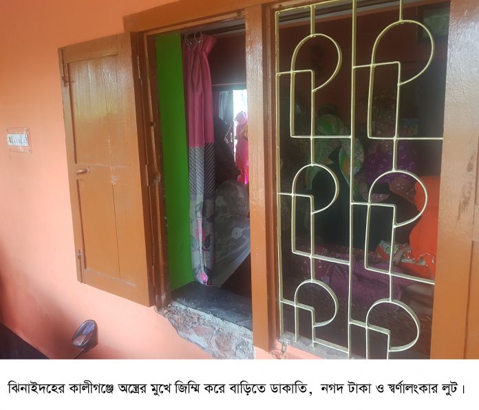 ঝিনাইদহ কালীগঞ্জে অস্ত্রের মুখে জিম্মি করে বাড়িতে ডাকাতি,নগদ টাকা ও স্বর্ণালংকার লুট