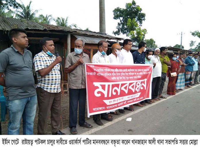 রাষ্ট্রায়ত্ব পাটকল চালুর দাবিতে ইষ্টার্ণ গেটে ওয়ার্কার্স পার্টির মানববন্ধন