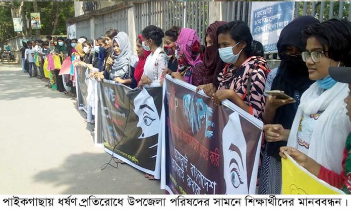 খুলনার পাইকগাছায় ধর্ষণ প্রতিরোধে উপজেলা পরিষদের সামনে শিক্ষার্থীদের মানববন্ধন-লোকসমাজ