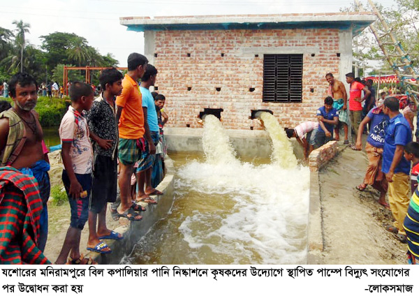 যশোরের মনিরামপুরে বিল কপালিয়ার পানি নিষ্কাশনে কৃষকদের উদ্যোগে স্থাপিত পাম্পে বিদ্যুৎ সংযোগের পর গতকাল উদ্বোধন করা হয়-লোকসমাজ