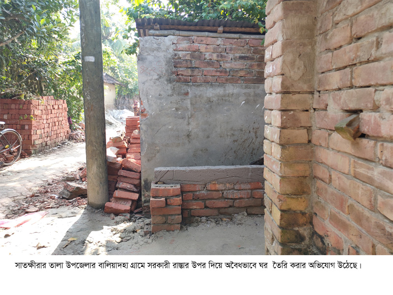 তালায় সরকারি রাস্তার ওপর পাকাঘর-টয়লেট তৈরির অভিযোগ