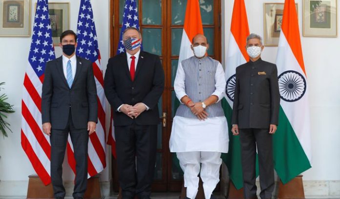 লোকসমাজ ডেস্ক॥ আঞ্চলিক নিরাপত্তা ও স্বাধীনতার প্রতি চীনের হুমকি মোকাবিলায় যুক্তরাষ্ট্র ও চীনকে একসঙ্গে কাজ করতে হবে। মঙ্গলবার ভারতীয় পররাষ্ট্রমন্ত্রীর সঙ্গে বৈঠকে মার্কিন পররাষ্ট্রমন্ত্রী মাইক পম্পেও এ কথা বলেছেন। বার্ষিক কৌশলগত আলোচনায় অংশ নিতে সোমবার প্রতিরক্ষামন্ত্রী মার্ক এসপারকে সঙ্গে নিয়ে ভারতে সফরে গিয়েছেন পম্পেও। এমন সময় দুই দেশের পররাষ্ট্র ও প্রতিরক্ষা পর্যায়ে বৈঠক অনুষ্ঠিত হলো যখন চীনের সঙ্গে লাদাখ অঞ্চল নিয়ে বিরোধে জড়িয়ে পড়েছে ভারত।