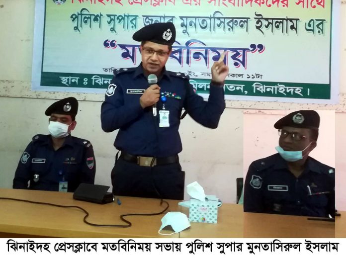 স্টাফ রিপোর্টার, ঝিনাইদহ॥ ঝিনাইদহ পুলিশ সুপার মুনতাসিরুল ইসলাম মানবিক পুলিশ হওয়ার প্রতি গুরুত্বারোপ করে বলেছেন, পেশাদারিত্ব ফিরিয়ে এনে মানুষের কল্যানে পুলিশ কাজ করছে। মানুষের সেবক হিসেবে আইনের শাসন প্রতিষ্ঠা করতে ঝিনাইদহে কাজ করতে চাই। তিনি বলেন, আগের সেই মান্ধাতা আমলের পুলিশিং ব্যবস্থার পরিবর্তন ঘটিয়ে মানুষের পাশে থাকার চ্যালেঞ্জ নিয়ে কাজ করছে বাংলাদেশ পুলিশ। তিনি বলেন, আইনের বাইরে পুলিশ কিছুই করবে না। আইন সবার ক্ষেত্রে সমান ভাবে প্রয়োগ করা হবে। পুলিশ সুপার মুনতাসিরুল ইসলাম বৃহস্পতিবার দুপুরে ঝিনাইদহ প্রেসকাবে সাংবাদিকদের সাথে মত বিনিময় সভায় এ কথা বলেন। তিনি বলেন, সাংবাদিক ও পুলিশ এক সঙ্গে ঝিনাইদহের উন্নয়নে কাজ করবে। তিনি সাবেক পুলিশ সুপার হাসানুজ্জামানের অবদানের কথা স্মরণ করে বলেন, তিনি ঝিনাইদহে জেলায় চমৎকার একটি সেটআপ রেখে গেছেন। এতে আমার কাজ করতে সুবিধা হচ্ছে। মতবিনিময় সভায় কোটচাঁদপুর সার্কেলের অতিরিক্ত পুলিশ সুপার মোহাইমিন ইসলাম ও ঝিনাইদহ সদর থানার ওসি মিজানুর রহমান খান উপস্থিত ছিলেন।