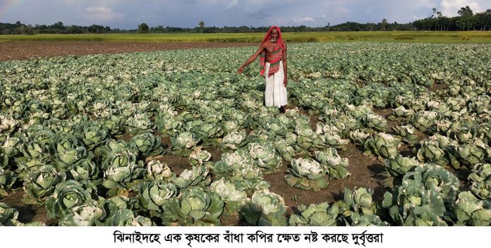 ঝিনাইদহে এক কৃষকের বাঁধা কপির ক্ষেত নষ্ট করছে দুর্বৃত্তরা