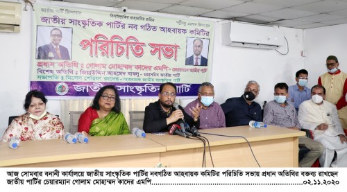 জাতীয় সাংস্কৃতিক পার্টির আহবায়ক এবং জাতীয় পার্টি চেয়ারম্যান’র উপদেষ্টা ও স্ত্রী শেরিফা কাদেরের সভাপতিত্বে অনুষ্ঠিত পরিচিতি সভায় গোলাম মোহাম্মদ কাদের আরো বলেন, দেশে মানুষের জান-মালের নিরাপত্তার অভাব স্পষ্ট। রাজপথে দুর্ঘটনায় মানুষের মৃত্যু যেন নিত্য-নৈমত্তিক ঘটনা হয়ে দাঁড়িয়েছে। দেশের আইন-শৃংখলা পরিস্থিতি উন্নয়নে সরকারকেই ব্যবস্থা নিতে হবে। তিনি বলেন, সর্বস্তরে জবাবদিহিতার অভাবে সুশাসনে ঘাটতি সৃষ্টি হয়েছে। বলেন, আমরা দেশ থেকে খুন, ধর্ষণ, অবিচার-অনাচার এর অবাসান চাই। জাপা বলেন, বিশে^র সকল বৈপ্লবিক পরিবর্তন ও সামাজিক বিবর্তনে সাংস্কৃতিক কর্মীরা সবচেয়ে গুরুত্বপূর্ণ ভুমিকা রেখেছেন। তিনি বলেন, একটি দীর্ঘ বক্তৃতা মানুষকে যতটা উদ্বুদ্ধ করতে পারে, তার চেয়ে একটি গান বা একটি কবিতা স্বল্প সময়ের মধ্যেই মানুষকে বেশি উদ্বুদ্ধ করতে পারে এবং তা হয় অনেক বেশি স্থায়ী। রাজনৈতিক আদর্শকে এগিয়ে নিতে সাংস্কৃতিক আন্দোলনের বিকল্প হয় না একথা উল্লেখ করে জি এম কাদের বলেন, তাই পল্লীবন্ধু হুসেইন মুহম্মদ এরশাদ-এর স্বপ্নের নতুন বাংলাদেশ গড়তে জাতীয় সাংস্কৃতিক পার্টিকে আরো শক্তিশালী করতে হবে।