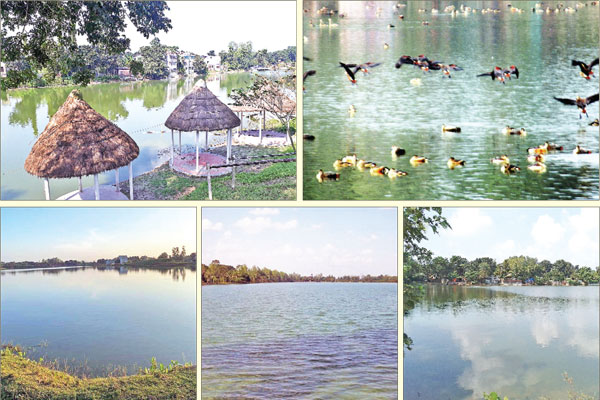 লোকসমাজ ডেস্ক॥ পাঁচ সাগরের জেলা দিনাজপুর। এখানে রয়েছে পাঁচটি দিঘি। জেলা শহরের কিছু দূরে হলেও এসব দিঘির রয়েছে ইতিহাস-ঐতিহ্য। সাগর নয়, তবু সাগর নামেই পরিচিত। দিঘিগুলো হলো- রামসাগর, সুখসাগর, মাতাসাগর, আনন্দ সাগর ও জুলুম সাগর। রামসাগর : নাম তার রামসাগর। মধ্যযুগের বিখ্যাত সামন্ত রাজার অমর কীর্তি রামসাগর ঐতিহাসিক দিঘি। মহারাজাদের কীর্তিময় এ দিঘির অবস্থান দিনাজপুর শহর থেকে ৮ কিলোমিটার দূরে দক্ষিণে। চারদিকে সুউচ্চ মাটির ঢিবি, মাঝখানে দৃষ্টিনন্দন দিঘির নীল জলরাশি। পাড়ভূমিসহ এ দিঘির মোট জমির পরিমাণ ১৪৬ একর। দৈর্ঘ্য ৩ হাজার ৩৯৯ ফিট, প্রস্থ ৯৯৮ ফিট। গভীরতা গড়ে প্রায় ৯ মিটার, পাড়ের উচ্চতা ১ হাজার ৩৫০ মিটার। এ ছাড়া বাংলোর পাশে একটি ছোট্ট চিড়িয়াখানা রয়েছে। এখানে বিভিন্ন রঙের হরিণ, বানর, পাখিসহ কিছু পশুপাখি রয়েছে। এর পাশে রয়েছে শিশুদের জন্য পার্ক। তৎকালীন রাজা প্রাণনাথ প্রজাদের জলকষ্ট দূরীকরণ, সেচ-সুবিধা ও দুর্ভিক্ষপীড়িত প্রজাদের কাজের বিনিময়ে খাদ্য ও সংস্থান হিসেবে দিঘিটি খনন করান। এটি খনন করতে সে সময় প্রায় ৩০ হাজার টাকা ও ১৫ লাখ শ্রমিকের প্রয়োজন হয়েছিল। ১৭৫০ থেকে ১৭৫৫ সালের মধ্যে রামসাগর খনন করা হয়। ২০০১ সালে রামসাগরকে জাতীয় উদ্যানের মর্যাদা দেওয়া হয়। সুখসাগর : দিনাজপুর শহর থেকে সড়কপথে উত্তর-পুব দিকে ২ কিলোমিটার দূরে রাজবাটি। রাজবাটি থেকে ১০০ মিটার দূরে ‘সুখসাগর’। চারদিকে শাল ও আকাশমণি বাগান আর দৃষ্টিনন্দন পরিবেশ, যেন শহরের ব্যস্তময় জীবনে একটু শান্তির সুবাতাস বইয়ে দেয়। স্বচ্ছ জলরাশি, মাছের সাঁতার কাটা ও লাফালাফি এ সাগরের সৌন্দর্য বাড়িয়েছে। সাগরের পাড় যেন ছোট পাহাড়ের মতো। শীতকালে বসে অতিথি পাখির মেলা। সুখসাগর ঘিরে গড়ে তোলা হয়েছে ইকো পার্ক। যেখানে জীববৈচিত্র্য সংরক্ষণ তথা পরিবেশ উন্নয়নে পাখির অভয়াশ্রমে পরিণত হয়েছে। সুখসাগরের আয়তন ২২.৪৪ একর। এখানে পিকনিক ও ট্যুরিস্ট স্থান সৃষ্টি করা হয়েছে। মাতাসাগর : রাজা প্রাণনাথের সময় খনন করা হয়েছে মাতাসাগর। সুখসাগর থেকে উত্তরে এ দিঘির অবস্থান। দিনাজপুর সদর উপজেলায় ৪৫.৬০ একর জমির নিয়ে অবস্থান। এর পাড়ের উচ্চতা কম কিন্তু বিস্তৃতি অনেক। মাতাসাগরের নৈসর্গিক পরিবেশ দর্শনার্থীদের মুগ্ধ করে। এখন পাড়ের উচ্চতা কমে গেছে। এ সাগর লিজ দেওয়ার পর থেকে দর্শনার্থীদের যাওয়া প্রায় বন্ধ হয়ে গেছে। আনন্দ সাগর : দিনাজপুর শহরের অদূরে আনন্দ সাগরের অবস্থান। এখানে প্রতি বছর হিন্দুধর্মাবলম্বীরা গোষ্ঠপূজা করেন এবং এক দিনের মেলাও বসে। জনশ্রুতি আছে, দিনাজপুরের তৎকালীন রাজা প্রাণনাথ রানীকে নিয়ে সোনার নৌকায় রাজবাড়ি থেকে পানিপথে নৌবিহারে এ দিঘিতে আসতেন। এ জন্যই এর নাম হয়েছ