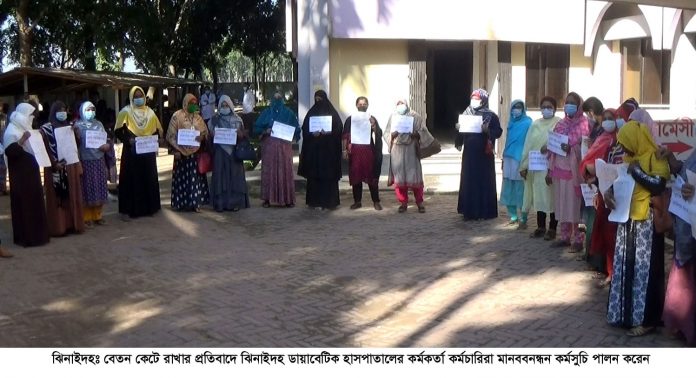 ডায়াবেটিক হাসপাতালের কর্মচারীদের মানববন্ধন ঝিনাইদহে