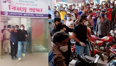 শার্শা (যশোর) প্রতিনিধি॥ বাংলাদেশ ক্রিকেটের অলরাউন্ডার সাকিব-আল-হাসানকে সামনে দেখে ভক্তদের আবেগ প্রবণ হওয়া অস্বাভাবিক কিছু নয়। এ রকমই আবেগ প্রবণ হয়ে পড়েছিল তার এক ভক্ত। বেনাপোল চেকপোস্টে সাকিব-আল-হাসানকে দেখে সেক্টর নামে এক ভক্ত দৌঁড়ে তার ছবি তুলতে যান। কিন্তু সাকিব-আল-হাসান ভক্তের মোবাইল ফোন কেড়ে নিয়ে ছুড়ে ফেলে দেন। ঘটনাটি ঘটেছে বেনাপোল চেকপোস্ট ইমিগ্রেশনে। বৃহস্পতিবার দুপুরে সাকিব-আল-হাসান ভারতে যাওয়ার উদ্দেশে বেনাপোল আসেন। বেনাপোল আসার পর তিনি বেনাপোল কাস্টমস কমিশনার আজিজুর রহমানের সাথে সৌজন্য সাাৎ করেন। পরে তিনি বেনাপোল ইমিগ্রেশন হয়ে ভারতে যাওয়ার সময় তার এক ক্রিকেট ভক্ত দৌড়ে ছবি তুলতে যান। এ সময় সাকিব-আল-হাসান তার কাছ থেকে মোবাইল কেড়ে নিয়ে ছুড়ে ফেলে দেন। সাকিবভক্ত মোহাম্মদ সেক্টরের কাছে কী ঘটেছে জানতে চাইলে বলেন, আমি সাকিব-আল-হাসানের একজন ভক্ত। সামনা সামনি কখনো তাকে দেখিনি। বেনাপোল চেকপোস্ট থেকে নিজেকে আর সামলাতে না পেরে তার সাথে একটা সেলফি তুলতে চাওয়া কি আমার অপরাধ? তিনি আমার ফোনটি কেড়ে নিয়ে ছুঁড়ে ফেলে দেন। এতে আমার ফোনটি ভেঙে নষ্ট হয়ে গেছে। বেনাপোল চেকপোস্ট ইমিগ্রেশনের ভারপ্রাপ্ত কর্মকর্তা আহসান হাবীব জানান, বাংলাদেশ ক্রিকেটের অলরাউন্ডার সাকিব-আল-হাসান এক বিশেষ কাজে ভারতে যাচ্ছেন। আগামীকাল শুক্রবার আবার তিনি বেনাপোল হয়ে দেশে ফিরে আসবেন। তবে বেনাপোলে এই অপ্রীতিকর ঘটনা ঘটেছে।