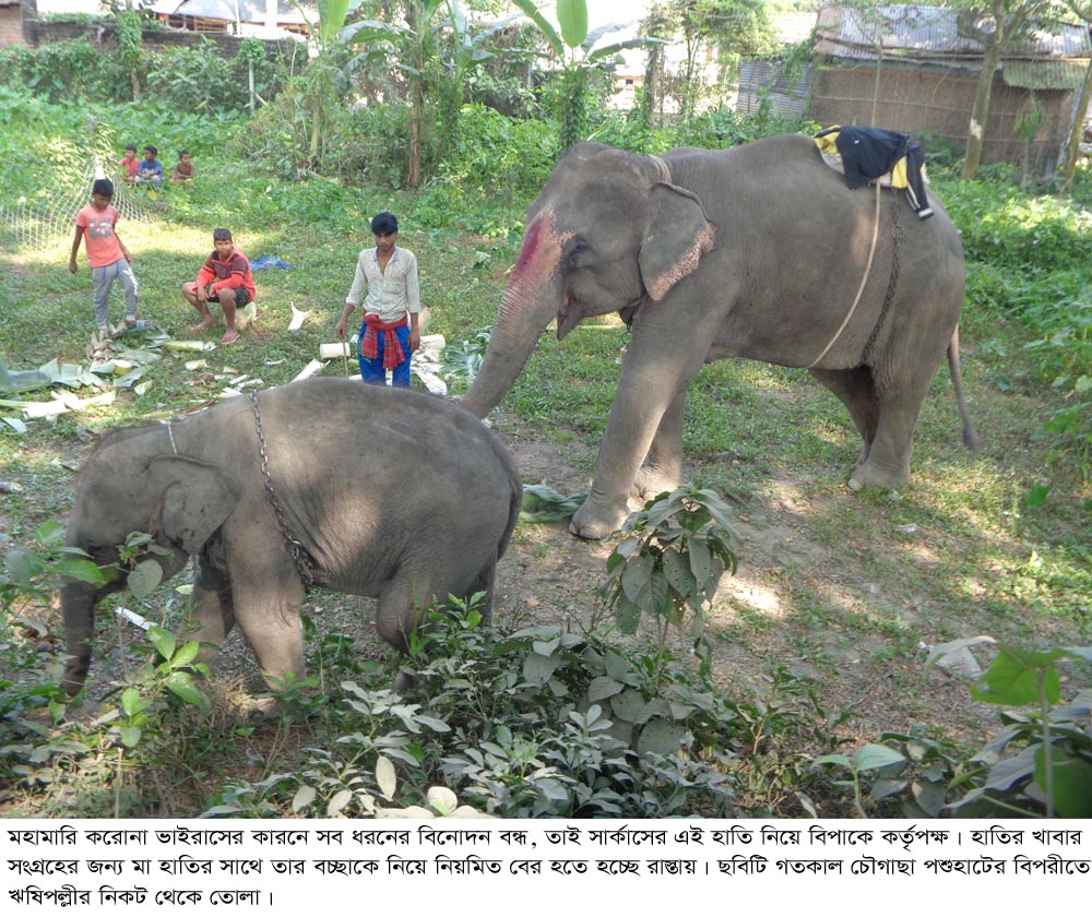 করোনার কারণে বিনোদন বন্ধ, তাই সার্কাসের এই হাতি নিয়ে বিপাকে কর্তৃপক্ষ। হাতির খাবার সংগ্রহের জন্য মা হাতির সাথে বাচ্চাকে নিয়ে নিয়মিত বের হতে হচ্ছে রাস্তায় -লোকসমাজ