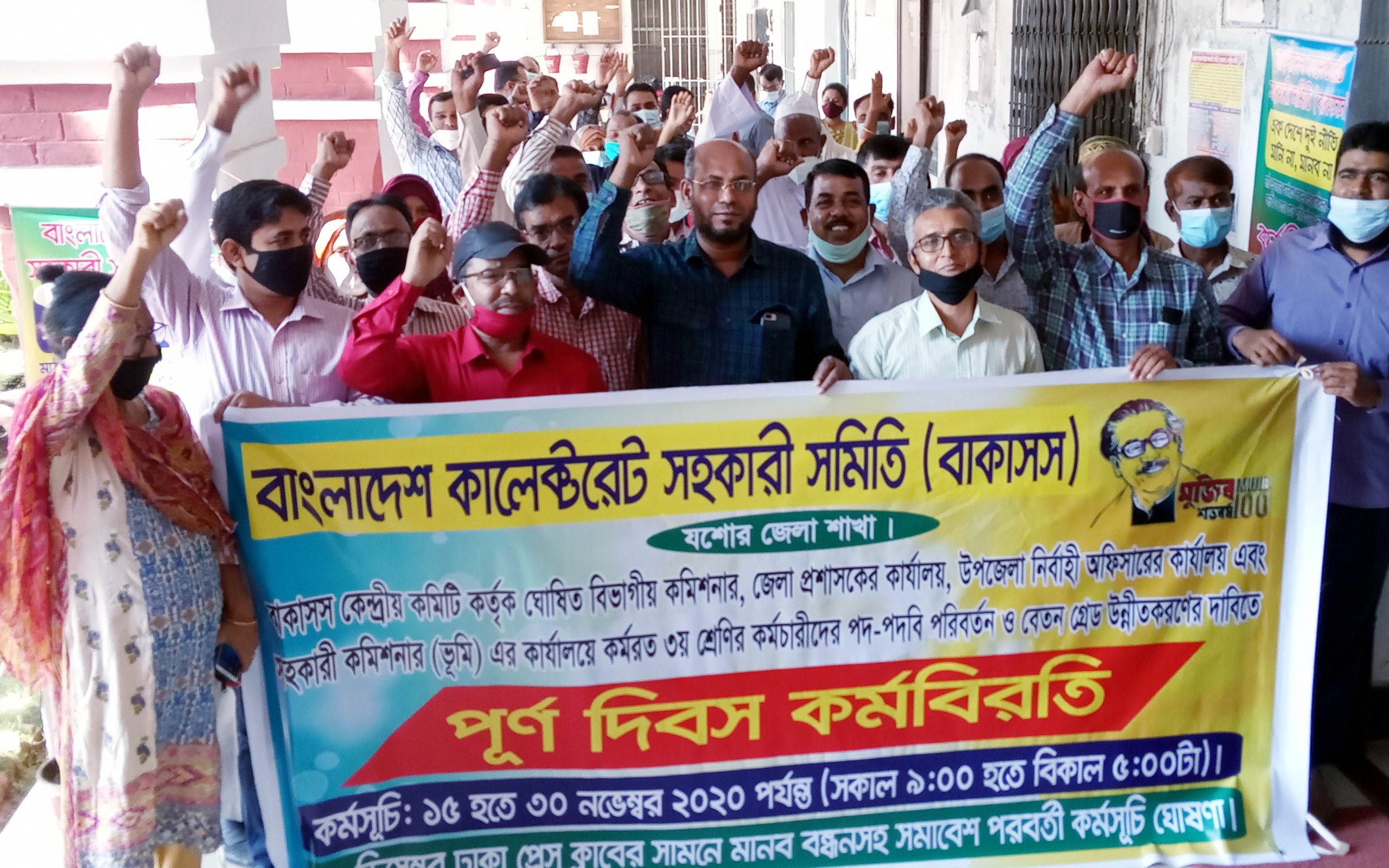 বেতন গ্রেড উন্নীতকরণসহ বিভিন্ন দাবিতে বাংলাদেশ কালেক্টরেট সহকারী সমিতি (বাকাসস) যশোর জেলা শাখা গতকাল পূর্ণ দিবস কর্মবিরতি পালন করে-লোকসমাজ