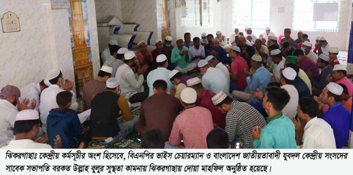 বিএনপির ভাইস চেয়ারম্যান ও বাংলাদেশ জাতীয়তাবাদী যুবদল কেন্দ্রীয় সংসদের সাবেক সভাপতি বরকত উল্লাহ বুলুর সুস্থতা কামনায় ঝিকরগাছায় দোয়া মাহফিল অনুষ্ঠিত হয়-লোকসমাজ