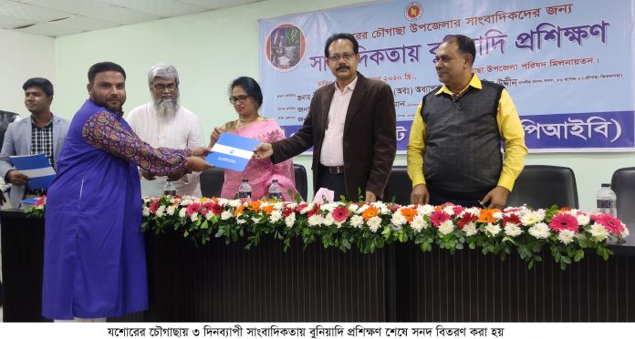 যশোরের চৌগাছায় ৩ দিনব্যাপী সাংবাদিকতায় বুনিয়াদি প্রশিক্ষণ শেষে সনদ বিতরণ করা হয়-লোকসমাজ