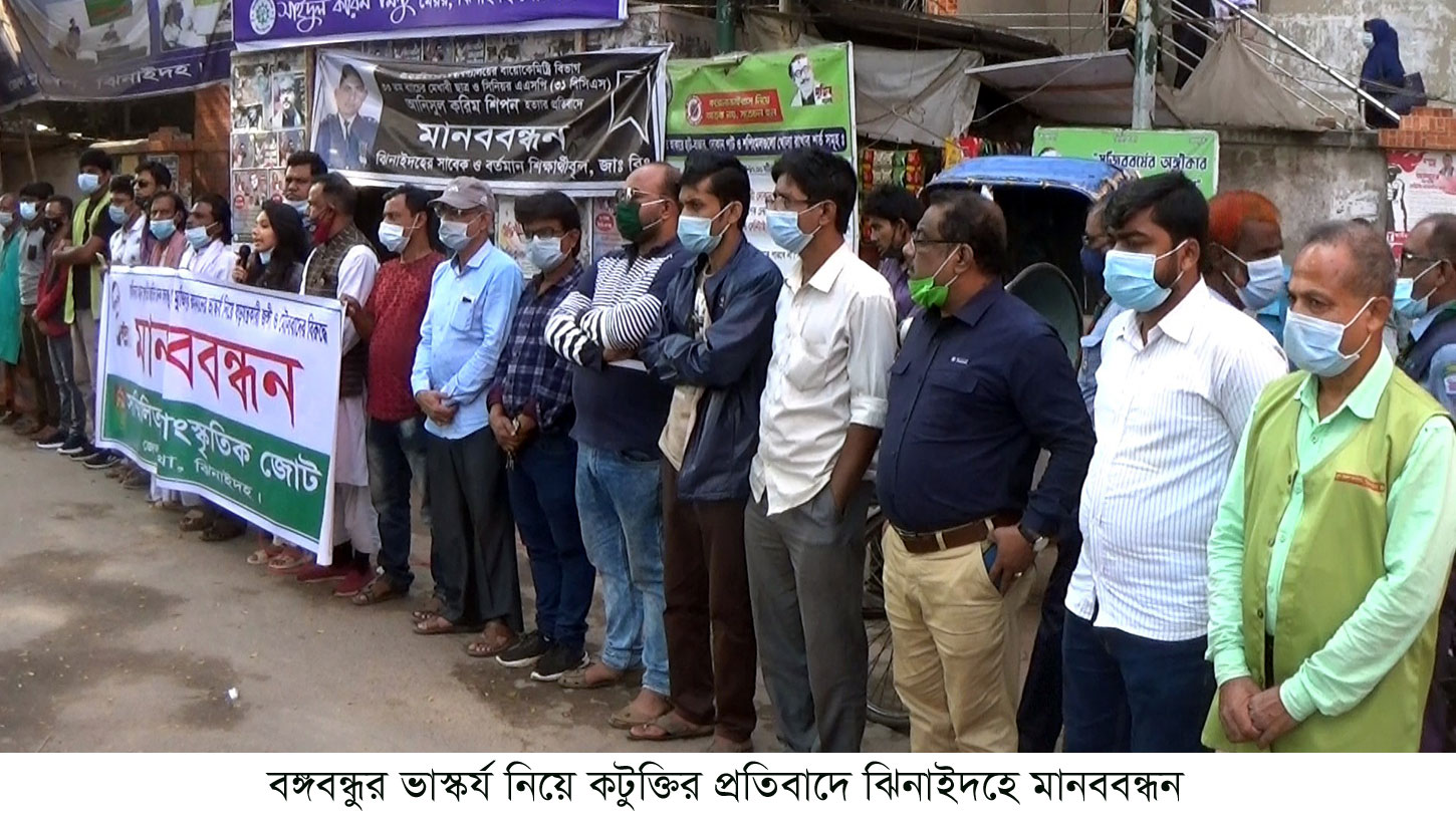 বঙ্গবন্ধুর ভাস্কর্য নিয়ে কটুক্তির প্রতিবাদে মানববন্ধন