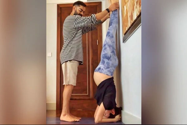 অন্তঃসত্ত্বা আনুশকাকে যোগব্যায়াম করাচ্ছেন কোহলি