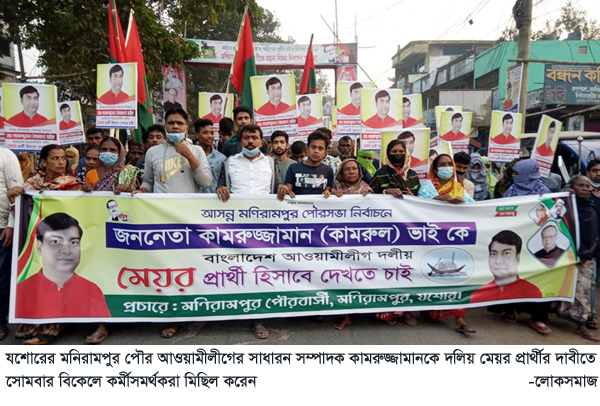 মনিরামপুরে আ.লীগ নেতা কামরুজ্জামানকে মেয়র প্রার্থী করার দাবিতে মিছিল