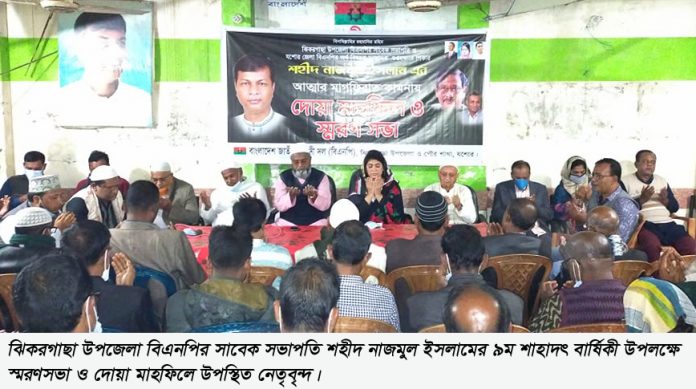 ঝিকরগাছা উপজেলা বিএনপির সাবেক সভাপতি নাজমুল ইসলামের শাহাদৎবার্ষিকী উপলক্ষে গতকাল তার স্মরণসভায় নেতৃবৃন্দ-লোকসমাজ