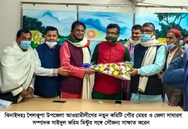 স্টাফ রিপোর্টার, ঝিনাইদহ ॥ ঝিনাইদহের শৈলকুপা উপজেলা আওয়ামী লীগের ২৭ সদস্য বিশিষ্ট নতুন আহ্বায়ক কমিটি গঠিত হয়েছে। আহ্বায়ক নির্বাচিত হয়েছেন মতিয়ার রহমান। এছাড়া যুগ্ম-আহ্বায়ক হয়েছেন সরোয়ার জাহান বাদশা ও মোস্তফা আরিফ রেজা মন্নু। নতুন কমিটির নেতৃবৃন্দ বুধবার ঝিনাইদহ জেলা আওয়ামী লীগের সাধারণ সম্পাদক ও পৌরসভার মেয়র সাইদুল করিম মিন্টুর সঙ্গে সৌজন্য সাক্ষাৎ করেন। এদিকে নতুন কমিটিকে শুভেচ্ছা ও অভিনন্দন জানিয়ে অনেকেই বিবৃতি দিয়েছেন।