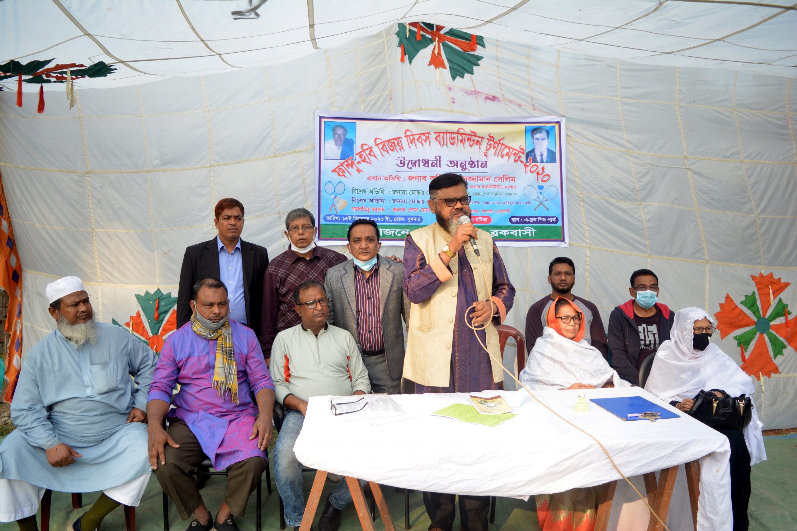 যশোর উপশহর শিশুপার্ক মাঠে ফান্দু-হবি ব্যাডমিন্টন টুর্নামেন্টের উদ্বোধনী অনুষ্ঠানে প্রধান অতিথির বক্তব্য রাখেন কবি ও গীতিকার কাসেমুজ্জামান সেলিম-লোকসমাজ