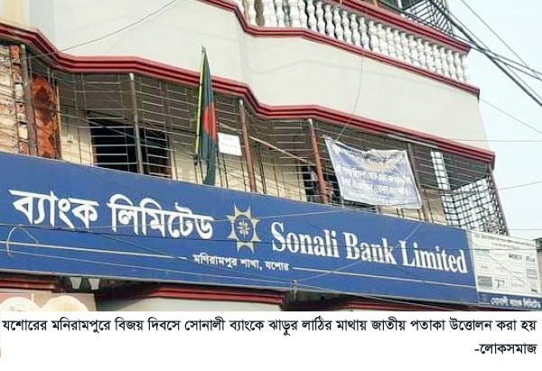 যশোরের মণিরামপুরে বিজয় দিবসে সোনালী ব্যাংকে ঝাড়–র লাঠির মাথায় জাতীয় পতাকা উত্তোলন করা হয়- লোকসমাজ