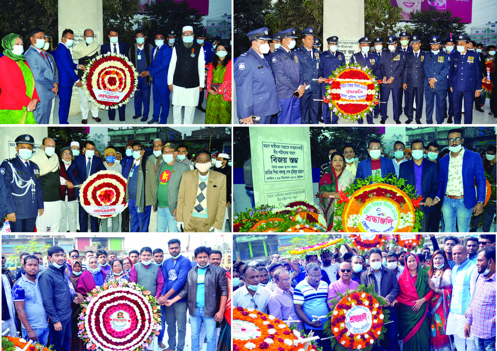 মহান বিজয় দিবস উপলক্ষে যশোরের বিজয় স্মৃতিস্তম্ভে ফুল দিয়ে শ্রদ্ধা নিবেদন করেন জেলা প্রশাসক, পুলিশ সুপার, জেলা মুক্তিযোদ্ধা সংসদ, জেলা পরিষদ, সদর উপজেলা পরিষদ ও পৌরসভা-লোকসমাজ