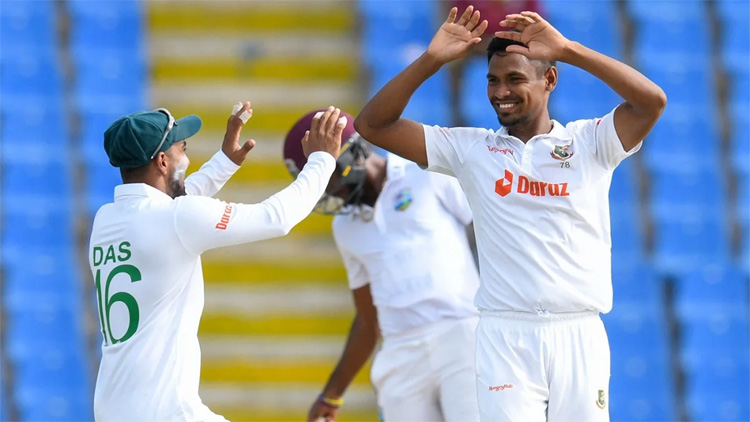 ব্যাটারদের ভরাডুবির দিনে ব্যতিক্রম বোলাররা। মোস্তাফিজুর রহমান, খালেদ আহমেদ ও এবাদত হোসেনকে নিয়ে গড়া পেস আক্রমণ বিভাগ বেশ ভুগিয়েছে ক্যারিবিয়ানদের। দুই স্পিনার সাকিব ও মিরাজও কম যাননি। প্রথম ইনিংসে ২ উইকেট হারিয়ে ৯৫ রান করে প্রথম দিন শেষ করেছে স্বাগতিকেরা।