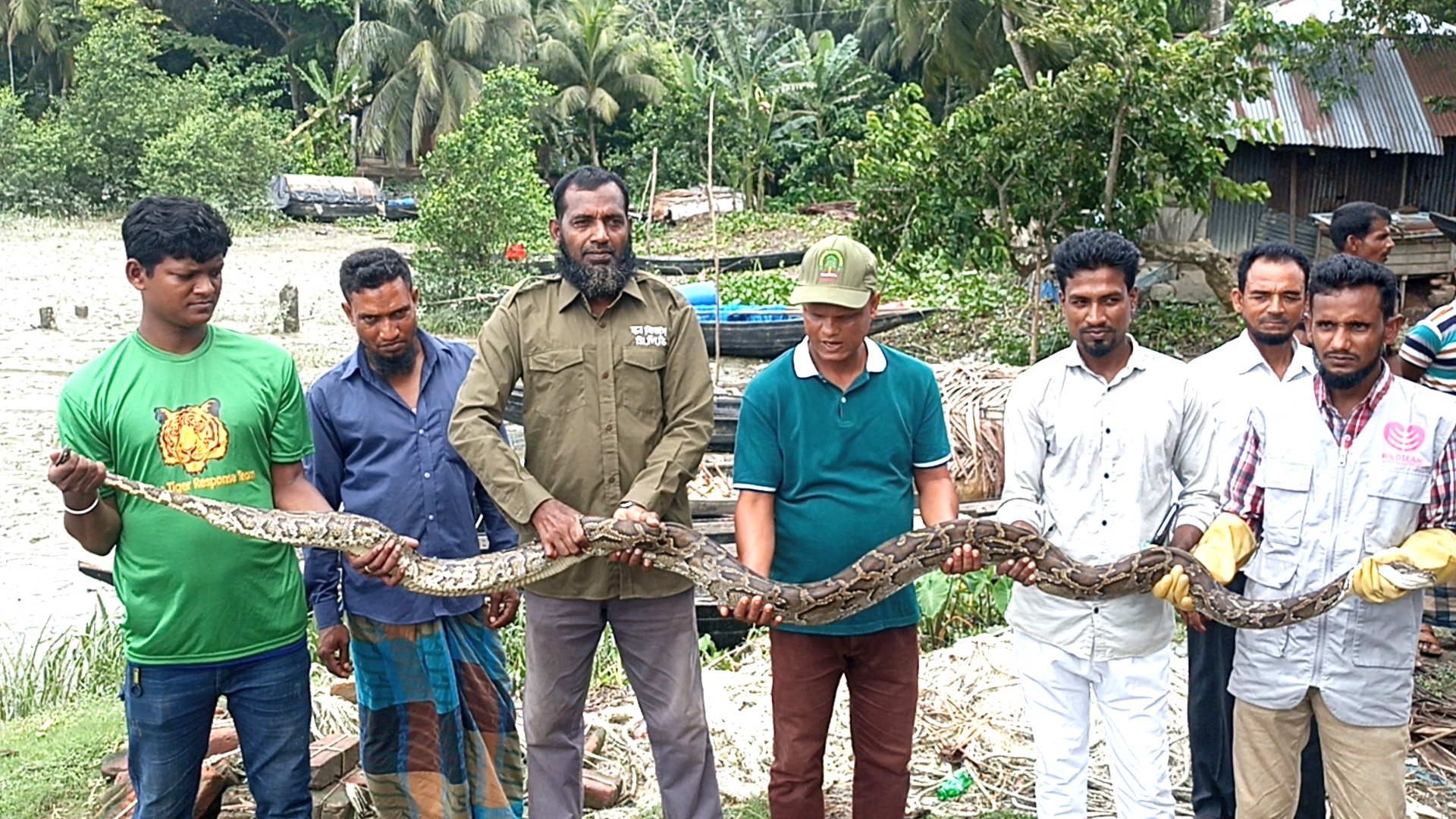 শরণখোলায় ২০ কেজি ওজনের অজগর উদ্ধার
