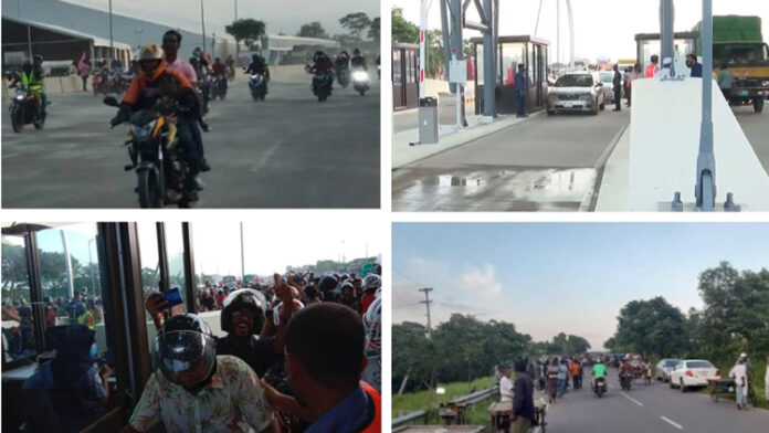 সকালে পদ্মা সেতু এলাকায় গিয়ে দেখা গেছে, নির্দিষ্ট পরিমাণ টোল দিয়ে যানবাহনগুলো সুশৃঙ্খলভাবে সেতুর ওপর দিয়ে পদ্মা পার হচ্ছে।