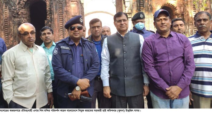 স্টাফ রিপোর্টার, অভয়নগর (যশোর)॥ যশোরের অভয়নগরে ঐতিহ্যবাহী এগার শিব মন্দির পরিদর্শন করেছেন খুলনায় নিযুক্ত ভারতের সহকারী হাই কমিশনার ইন্দ্রজিৎ সাগর।  মঙ্গলবার দুপুরে উপজেলার বাঘুটিয়া ইউনিয়নের অভয়নগর গ্রামে অবস্থিত এই শিব মন্দির পরিদর্শন করেন তিনি। এসময় উপস্থিত ছিলেন, অভয়নগর থানার ভারপ্রাপ্ত কর্মকর্তা একেএম শামীম হাসান, বাঘুটিয়া ইউপি চেয়ারম্যান শেখ তৈয়েবুর রহমান, মন্দির কমিটির নেতৃবৃন্দ, সাংবাদিক ও এলাকাবাসী।