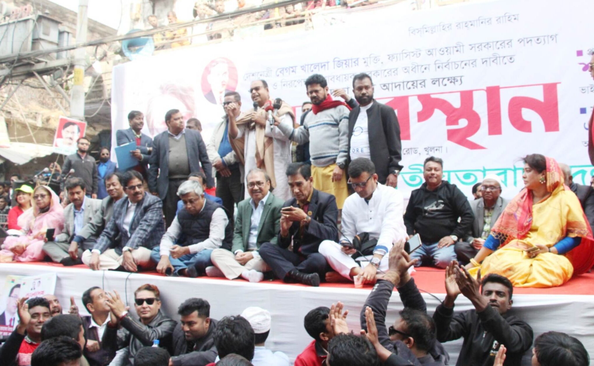 গণঅবস্থান কর্মসূচিতে বিশেষ অতিথির বক্তব্যে বিএনপি চেয়ারপারসনের উপদেষ্টা ও সাবেক সংসদ সদস্য মেহেদী আহমেদ রুমি বলেন, জনবিচ্ছিন্ন এই সরকার এখন কাগজের বাঘ, দেশ এখন পুলিশি রাষ্ট্রে পরিণত হয়েছে। এমপি -মন্ত্রীরা পুলিশ ছাড়া চলাচল করতে পারছে না। আওয়ামী সন্ত্রাসীদের চ্যালেঞ্জ করে তিনি বলেন, কোন বাহিনীর সদস্য ছাড়া মাঠে নামলে বাংলার জনগণের রোষানলে তারা পালাবার পথ খুঁজে পাবেন না।  বিভাগীয় ভারপ্রাপ্ত সাংগঠনিক সম্পাদক অনিন্দ্য ইসলাম অমিত বলেন, স্বৈরাচার হাসিনা সরকারকে হটিয়ে গণতন্ত্র পুনঃপ্রতিষ্ঠা না হওয়া পর্যন্ত শহীদ জিয়ার সৈনিকেরা ঘরে ফিরবে না। ক্ষমতা দখলের জন্যে নয়; দেশের মানুষের অধিকার প্রতিষ্ঠার জন্যে আন্দোলন সংগ্রাম অব্যাহত থাকবে।  বিএনপির তথ্য সম্পাদক আজিজুল বারী হেলাল বলেন, ১৯৭১ সালে এদেশের মুক্তিকামী জনতা শহীদ রাষ্ট্রপতি জিয়াউর রহমানের ডাকে সাড়া দিয়ে যুদ্ধে ঝাঁপিয়ে পড়ে দেশকে স্বাধীন করেছিলো। তার নেতৃত্বে দেশকে হানাদারমুক্ত করা হয়েছিলো। সেভাবে তার সুযোগ্য উত্তরসুরি আগামী দিনের রাষ্ট্রনায়ক তারেক রহমানের ডাকে সাড়া দিয়ে দেশের জনগণ হাসিনা হটাও আন্দোলনে রাজপথে নেমেছে। এই ফ্যাসিস্ট সরকারের পতন না ঘটিয়ে জনগণ ঘরে ফিরবে না। খুলনা মহানগর বিএনপির আহবায়ক ও কেন্দ্রীয় নির্বাহী কমিটি সদস্য শফিকুল আলম মনার সভাপতিত্বে এবং জেলা বিএনপির আহবায়ক আমীর এজাজ খান, মহানগর সদস্য সচিব শফিকুল আলম তুহিন ও জেলা সদস্য সচিব মনিরুল হাসান বাপ্পির পরিচালনায় গণঅবস্থান কর্মসূচিতে আরো বক্তব্য রাখেন স্থানীয় সরকার বিষয়ক সম্পাদক অধ্যক্ষ সোহরাব উদ্দিন, ভারপ্রাপ্ত কোষাধ্যক্ষ মাহমুদ হাসান খান বাবু, শিক্ষা বিষয়ক সম্পাদক ওবায়দুর রহমান, সহসাংগঠনিক সম্পাদক জয়ন্ত কুমার কুন্ডু, সহপ্রচার সম্পাদক শামীমুর রহমান শামিম, সহতথ্য ও গবেণা বিষয়ক সম্পাদক আমিরুজ্জামান শিমুল, সহধর্ম বিষয়ক সম্পাদক অমলেন্দু দাশ অপু, যশোর জেলার আহবায়ক অধ্যাপক নার্গিস বেগম, সাবেক সংসদ সদস্য মফিকুল হাসান তৃপ্তি, সাবেক সংসদ সদস্য কাজী আলাউদ্দিন, নির্বাহী কমিটির সদস্য ও সাবেক সংসদ সদস্য শহিদুল আলম, সাবেক সংসদ সদস্য শাম্মী আক্তার, কেন্দ্রীয় নির্বাহী কমিটির সদস্য ফরিদা ইয়াসমিন, কেন্দ্রীয় সদস্য সাবিরা নাজমুল মুন্নি, কেন্দ্রীয় সদস্য আয়শা সিদ্দিকা মানি, মেহেরপুর জেলা সভাপতি ও সাবেক সংসদ সদস্য মাসুদ অরুন, সাবেক সংসদ্য রেজা আহমেদ বাচ্চু মোল্লা, ঝিনাইদহ জেলা সভাপতি এম এ মজিদ, নড়াইল বিশ্বাস জাহাঙ্গীর আলম, বাগেরহাট জেলা আহবায়ক ইঞ্জি. আকরাম হোসেন তালিম, সাতক্ষীরা জেলা আহবায়ক সৈয়দ ইফতেখার আলী, মাগুরা জেলার ভারপ্রাপ্ত সভাপতি আহসান হাবীব কিশোর, ঝিনাইদ জেলা বিএনপির সাধা