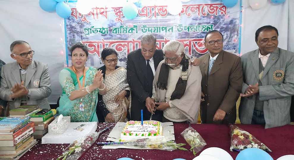 বাগেরহাট সংবাদদাতা॥ বাগেরহাটে বর্নাঢ্য আয়োজনের মধ্য দিয়ে শতবর্ষী শিক্ষা প্রতিষ্ঠান যদুনাথ স্কুল অ্যান্ড কলেজের প্রতিষ্ঠা বার্ষিকী উদযাপিত হয়েছে। দিনটি উপলক্ষে বৃহস্পতিবার দুপুরে বিদ্যালয় মিলনায়তনে এক আলোচনা সভার আয়োজন করা হয়। প্রতিষ্ঠানের অধ্যক্ষ ঝিমি মন্ডলের সভাপতিত্বে আলোচনাসভায় বক্তব্য দেন, বিশিষ্ট শিক্ষাবিদ অধ্যাপক মোজাফফর হোসেন, অবসরপ্রাপ্ত প্রধান শিক্ষক রবিন্দ্রনাথ মুখার্জী প্রমুখ। আলোচনাসভা শেষে অতিথিগণ প্রতিষ্ঠাবার্ষিকীর কেক কাটেন। উল্লেখ্য ১৯২৩ সালের এই দিনে বাগেরহাট শহরের দশানী নামক স্থানে এই বিদ্যালয়টি প্রতিষ্ঠিত হয়।