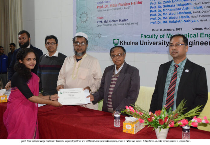 কুয়েটে ডীন’স তালিকার মেকানিক্যাল ইঞ্জিনিয়ারিং শিক্ষার্থীদের সনদ প্রদান