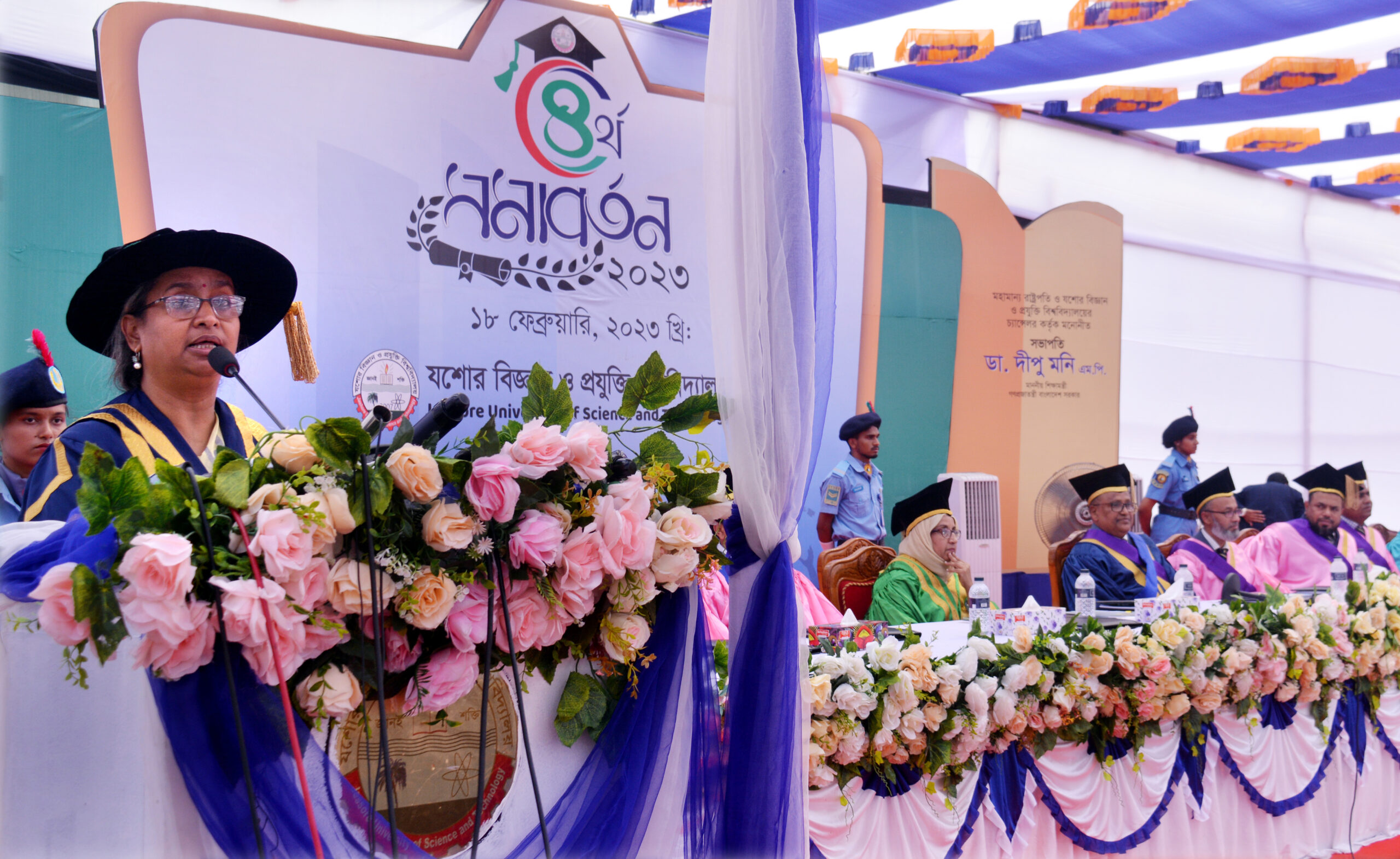 শিক্ষামন্ত্রী ডা. দীপু মনি শনিবার যশোর বিজ্ঞান ও প্রযুক্তি বিশ্ববিদ্যালয়ের (যবিপ্রবি) চতুর্থ সমাবর্তনে চ্যান্সেলরের মনোনীত হিসেবে সভাপতির বক্তব্য রাখেন।