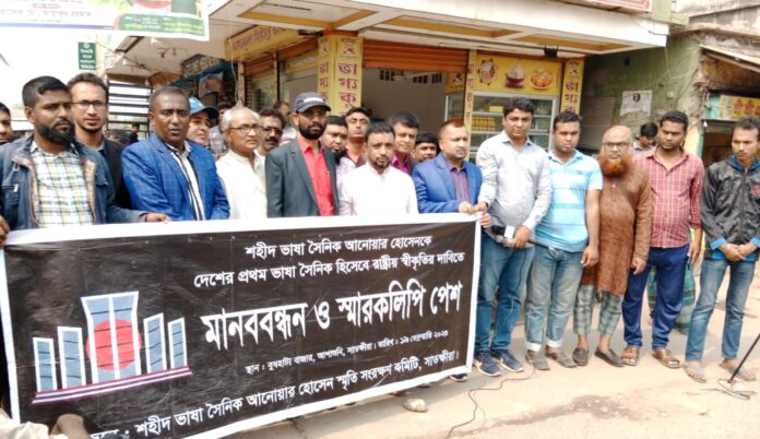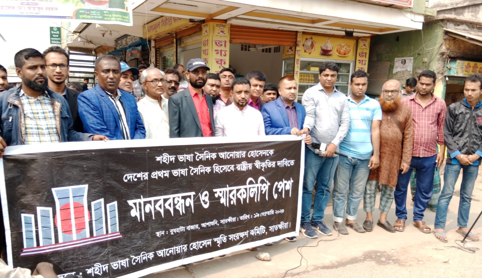 সাতক্ষীরার আনোয়ার হোসেনকে প্রথম ভাষা সৈনিকের স্বীকৃতির দাবিতে মানববন্ধন