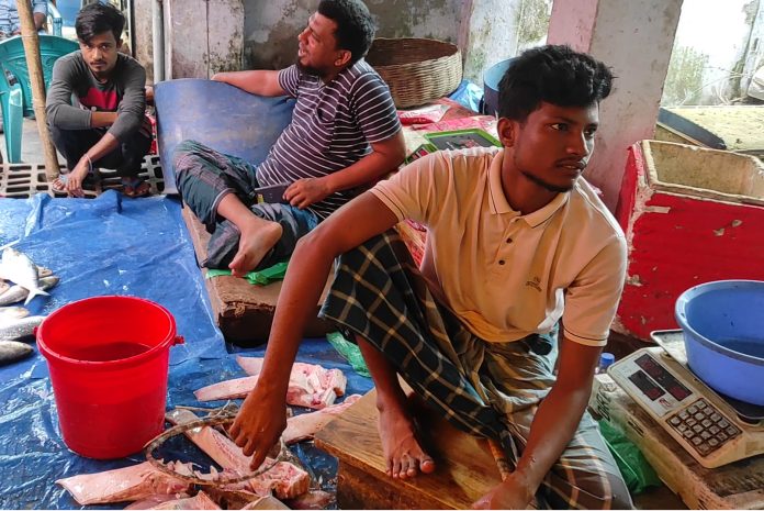 মোংলা বাজারে প্রকাশ্যে বিক্রি হচ্ছে শিকার নিষিদ্ধ সামুদ্রিক শাপলাপাতা মাছ