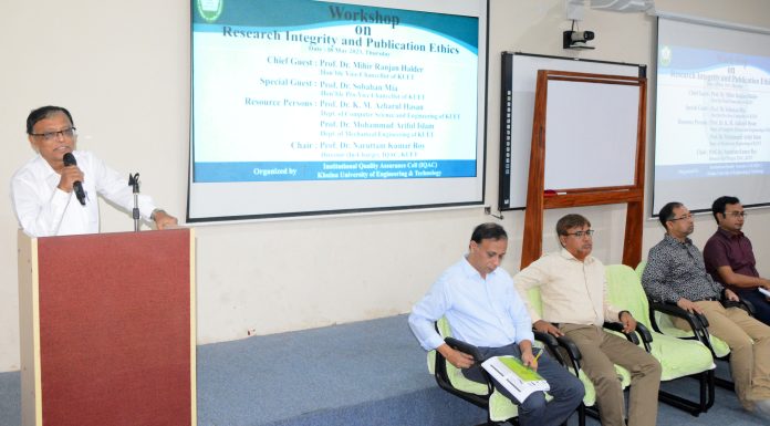 খুলনা প্রকৌশল ও প্রযুক্তি বিশ্ববিদ্যালয় (কুয়েট)-র ইনস্টিটিউশনাল কোয়ালিটি অ্যাসুরেন্স সেল (আইকিউএসি)-র আয়োজনে দিনব্যাপী ‘রিসার্চ ইনটিগ্রিটি অ্যান্ড পাবলিকেশন এথিক্স’ শীর্ষক ওয়ার্কশপ অনুষ্ঠিত হয়েছে।
